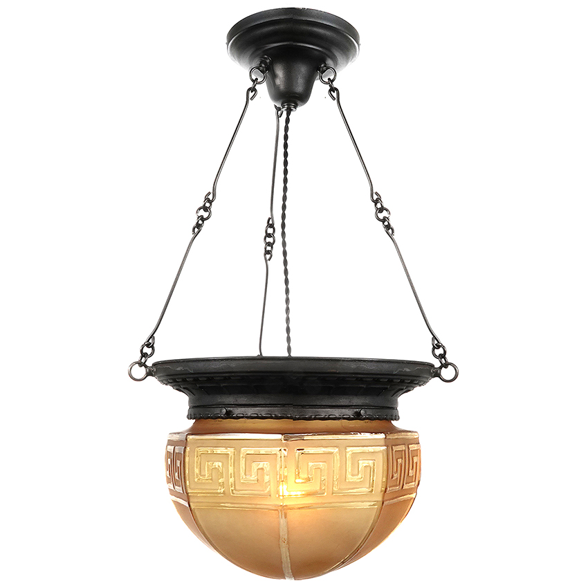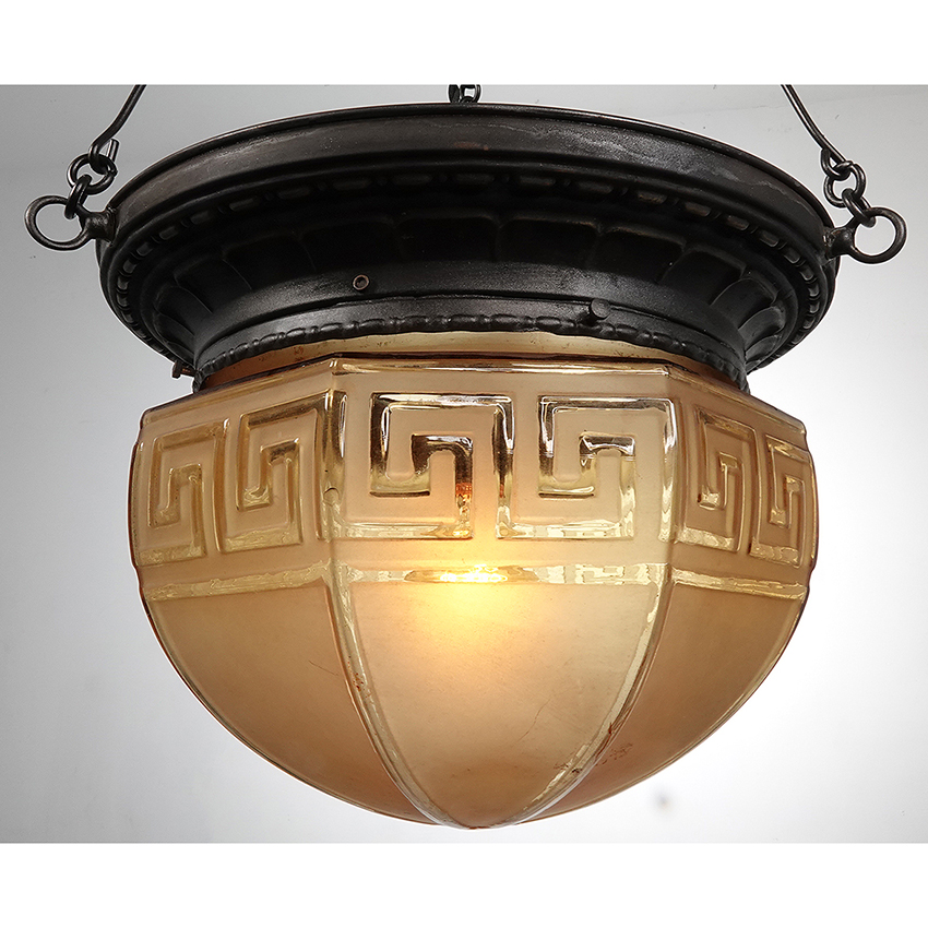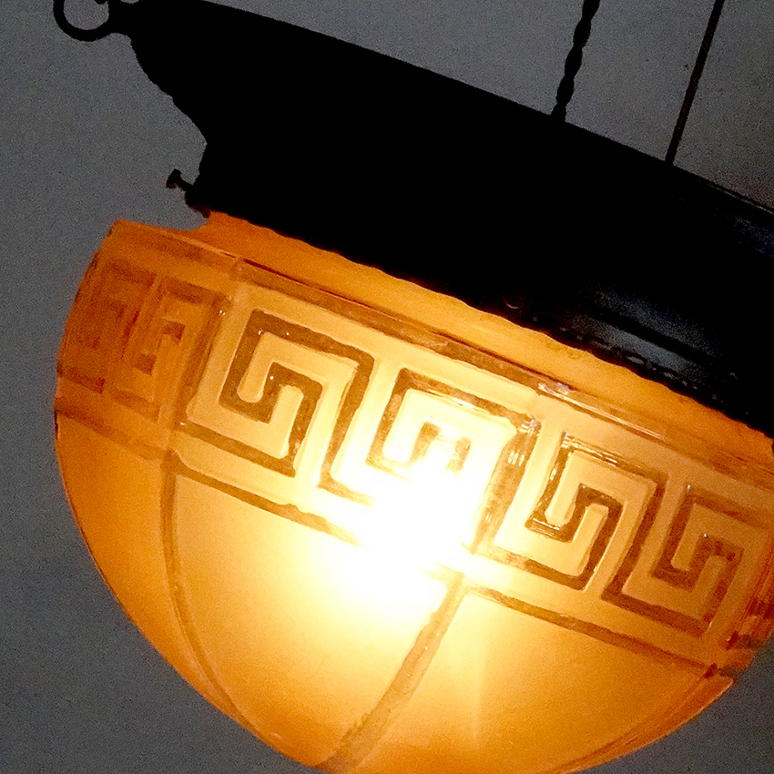 Foyer Lamp – Amber Greek Key Octagon Shade