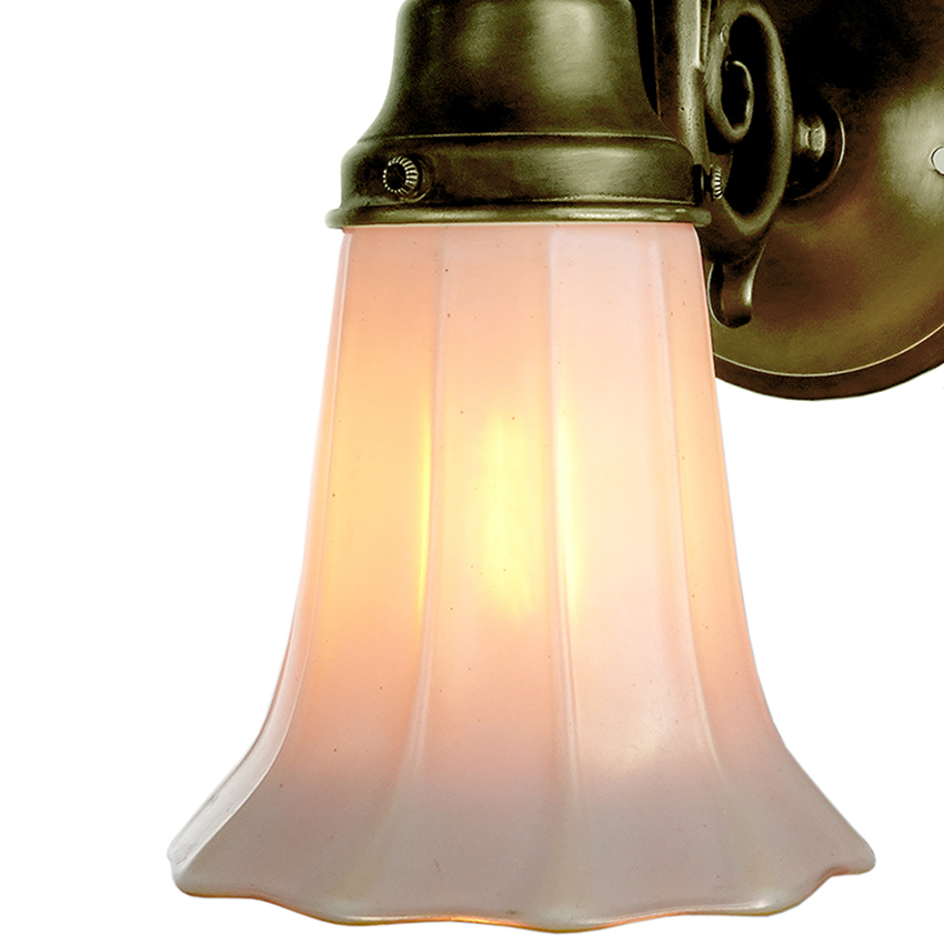 Quezal White Fluted Art Glass Shades with Aurene Interior – Sconce Matching Pair