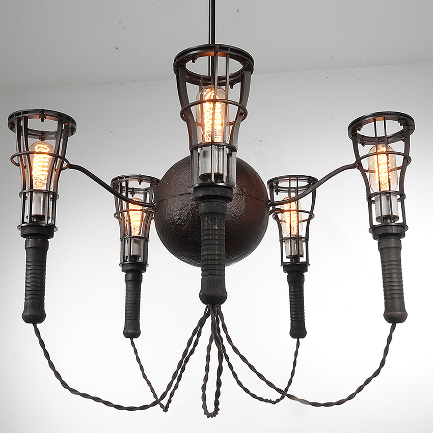 Unique Five Cage Light Industrial Chandelier